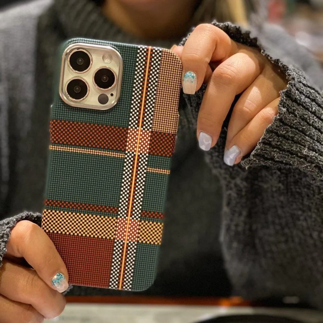 The Velvet Touch Protective Case offers a comfortable grip with precise cutouts for easy access to all buttons and ports. Its unique blend of colors and fabric-like texture makes your phone stand out.